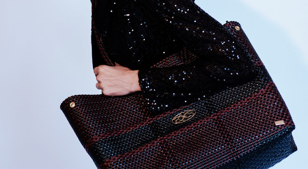MEDIUM BLACK RED BEIGE TOTE BAG