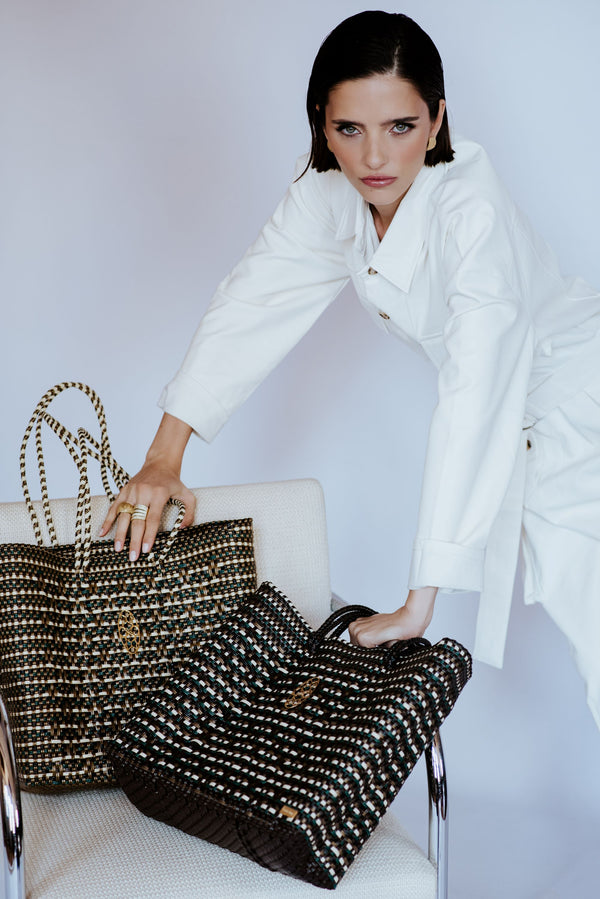 MEDIUM BLACK BEIGE LINE TOTE BAG